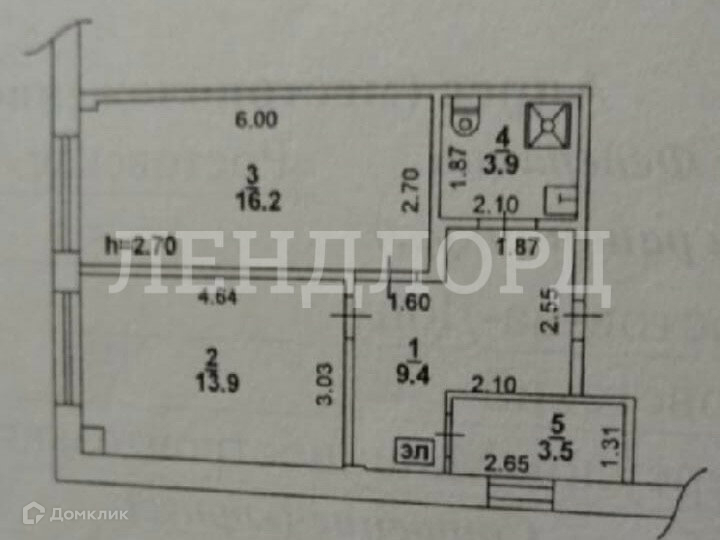 Высота потолков 2.7 м
