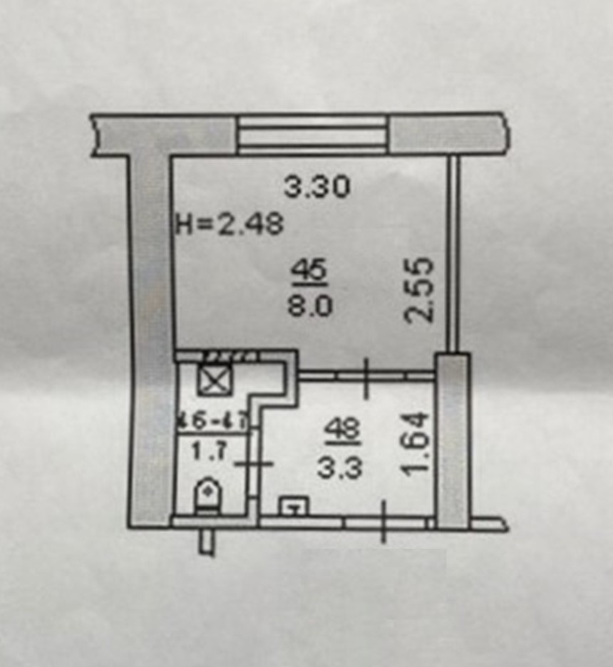Площадь кухни 3.3 м2