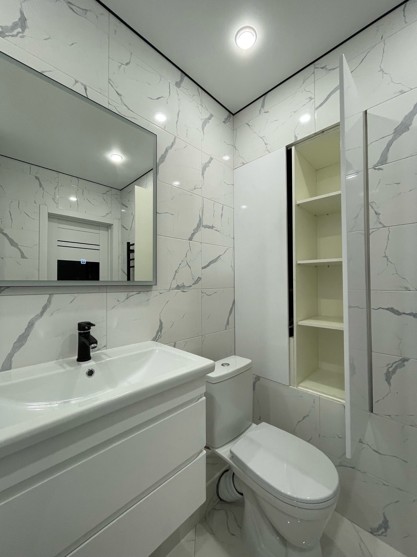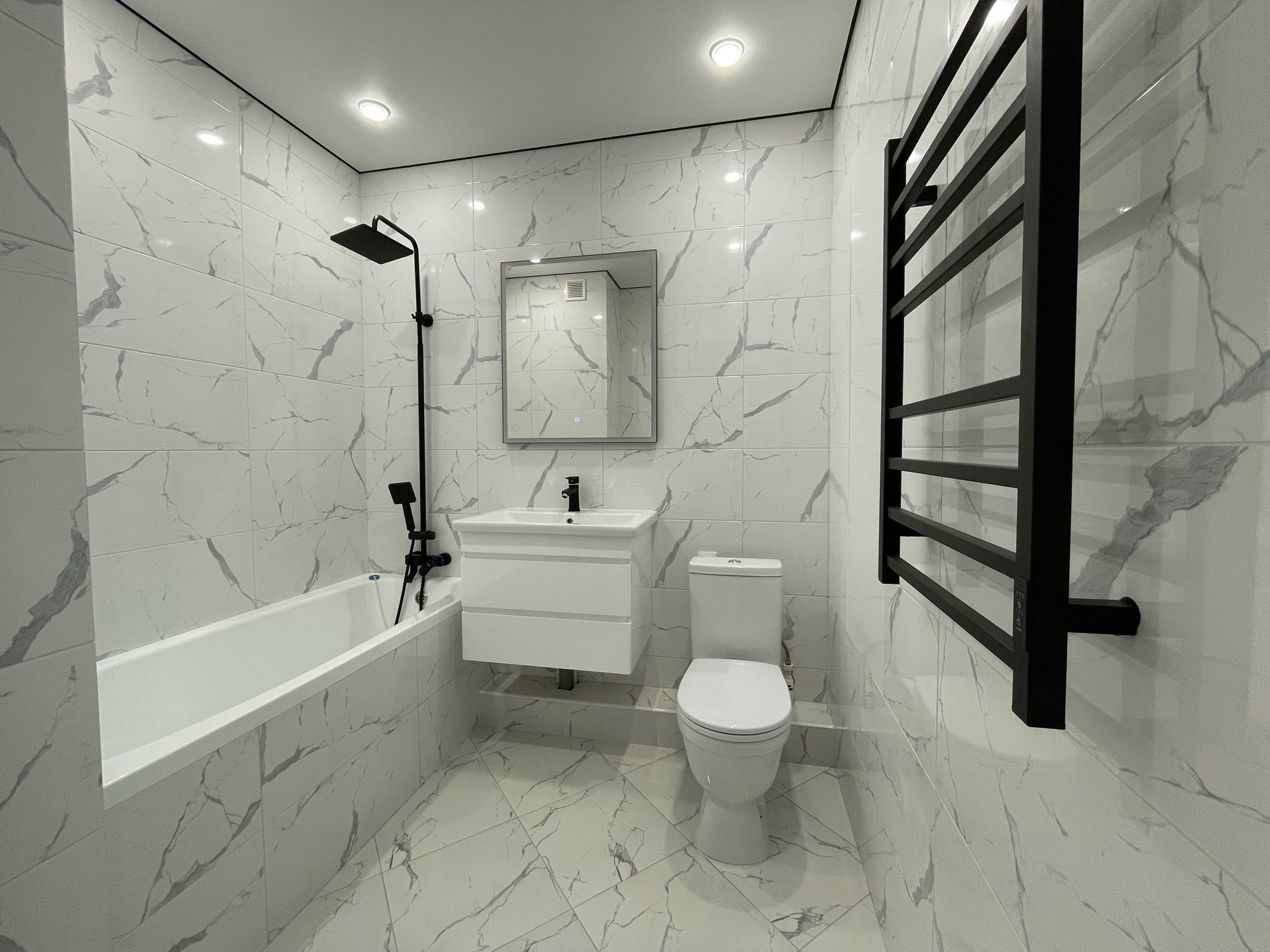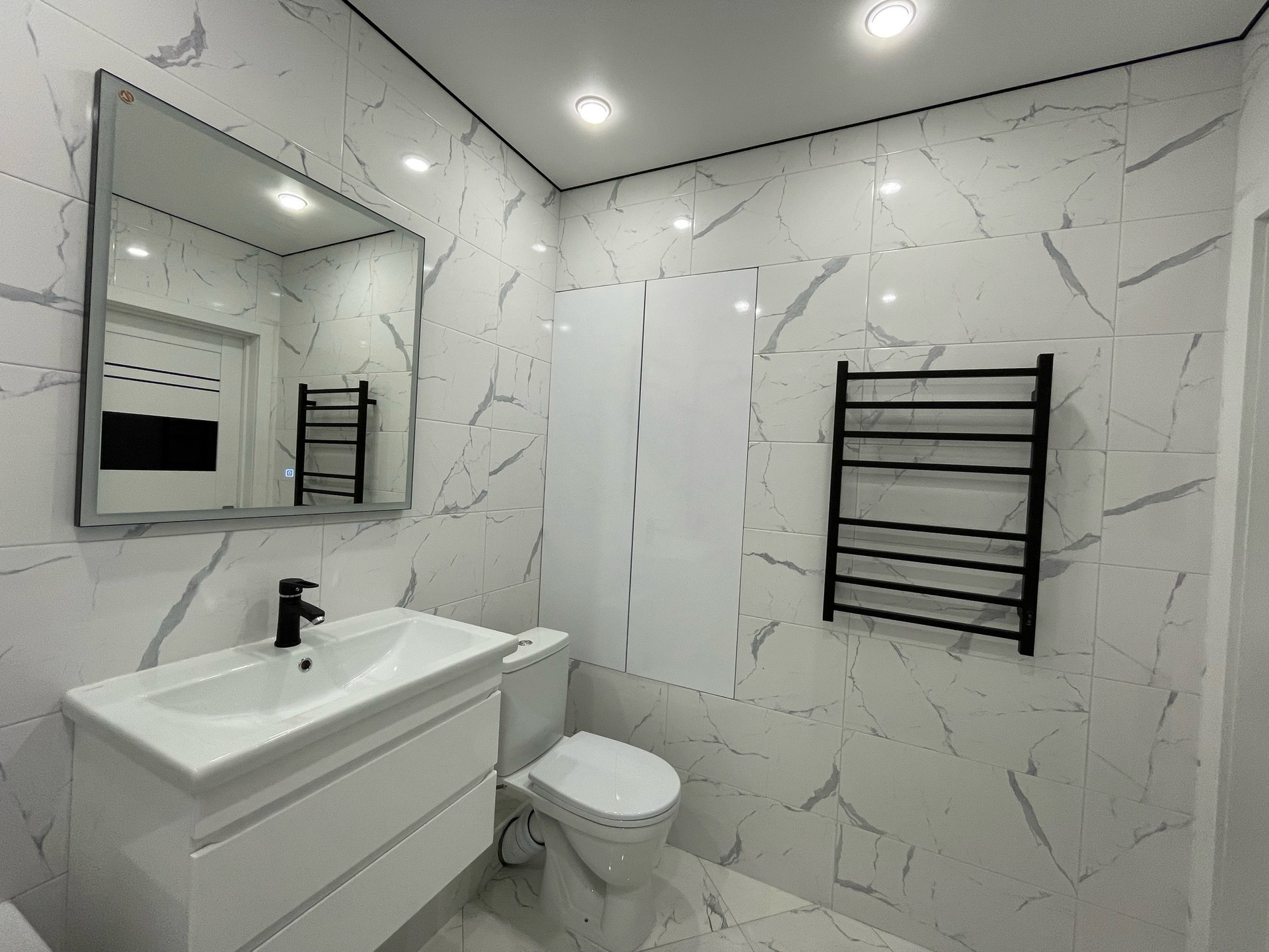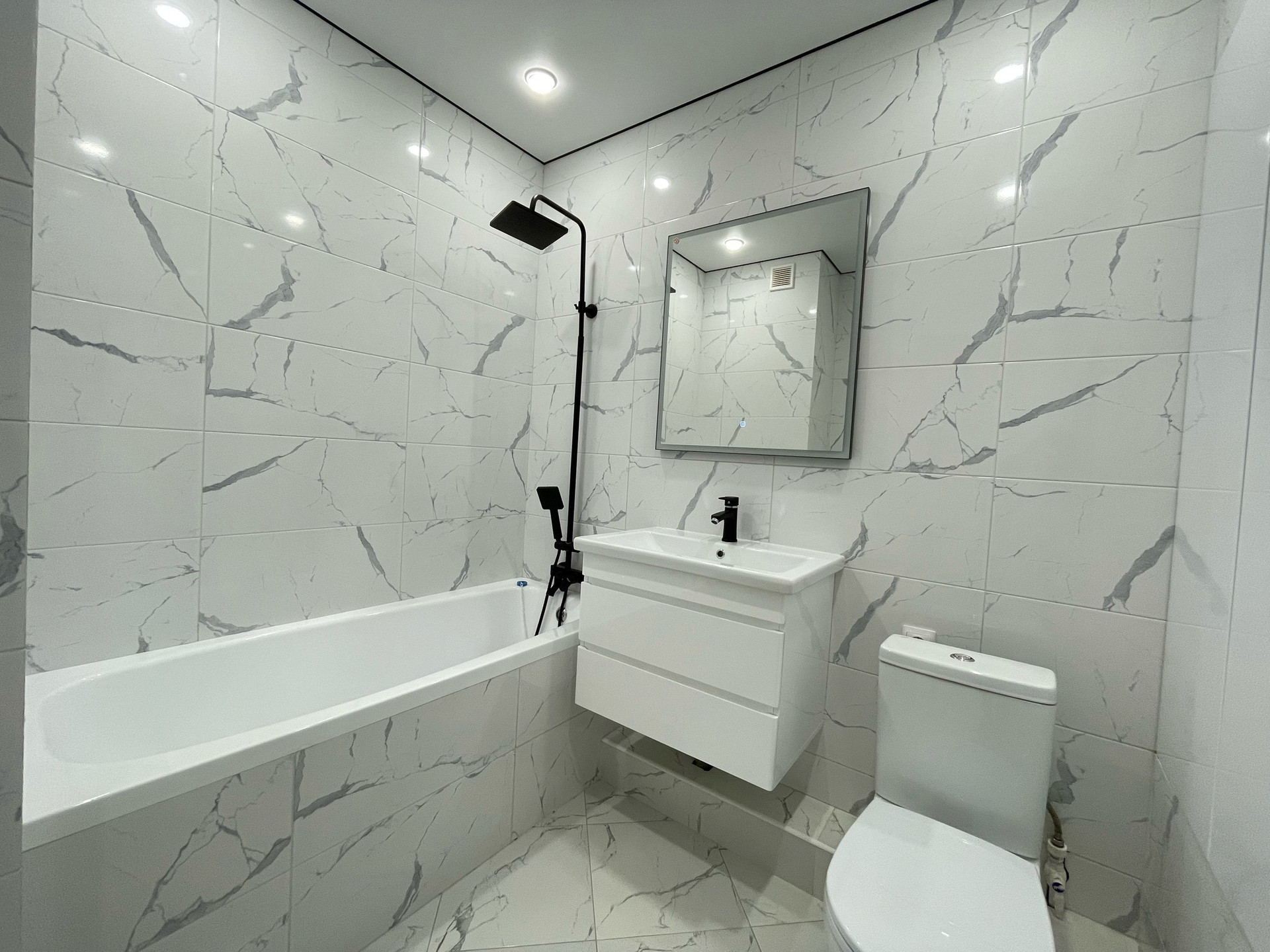 Пол и стены в ванной обработаны гидроизоляцией, заменены все входные краны. Встроенная ванна, зона для хранения , вся сантехника на гарантии еще минимум 2 года.