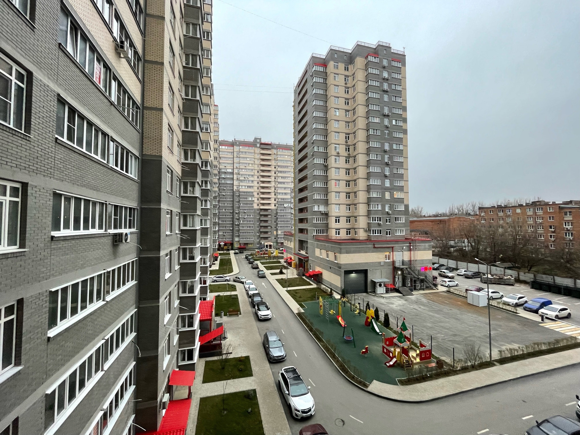 Во дворе наземная парковка, детские площадки, пункты выдачи заказов, салон красоты, магазины и рядом рынок со свежими овощами и фруктами, домашней молочной и тд. В микрорайоне своя новая школа и дет сад, через забор - музыкальная школа.