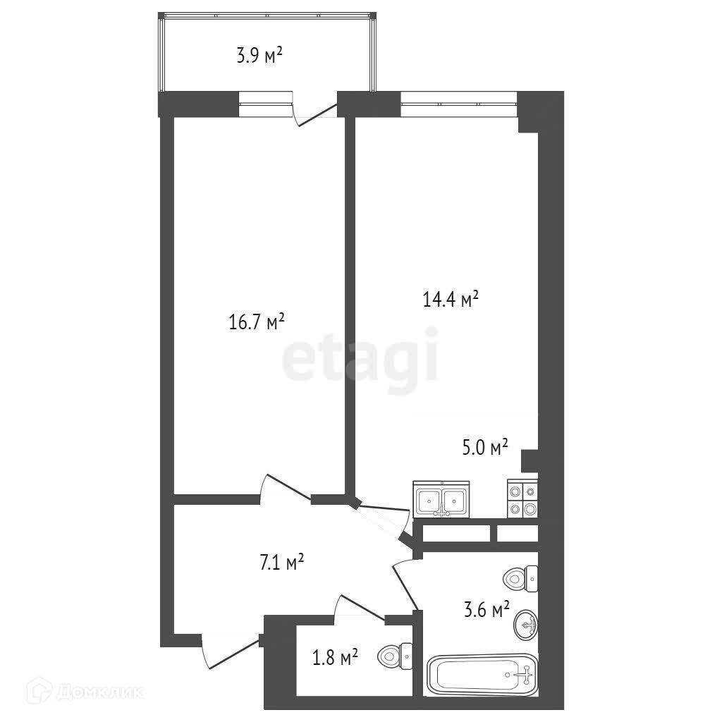 Общая площадь 49.9 м2