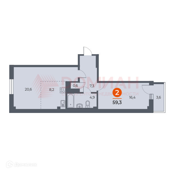 Планировка с кухней-гостиной 30 м правильной формы + изолированная комната 16,5 м.