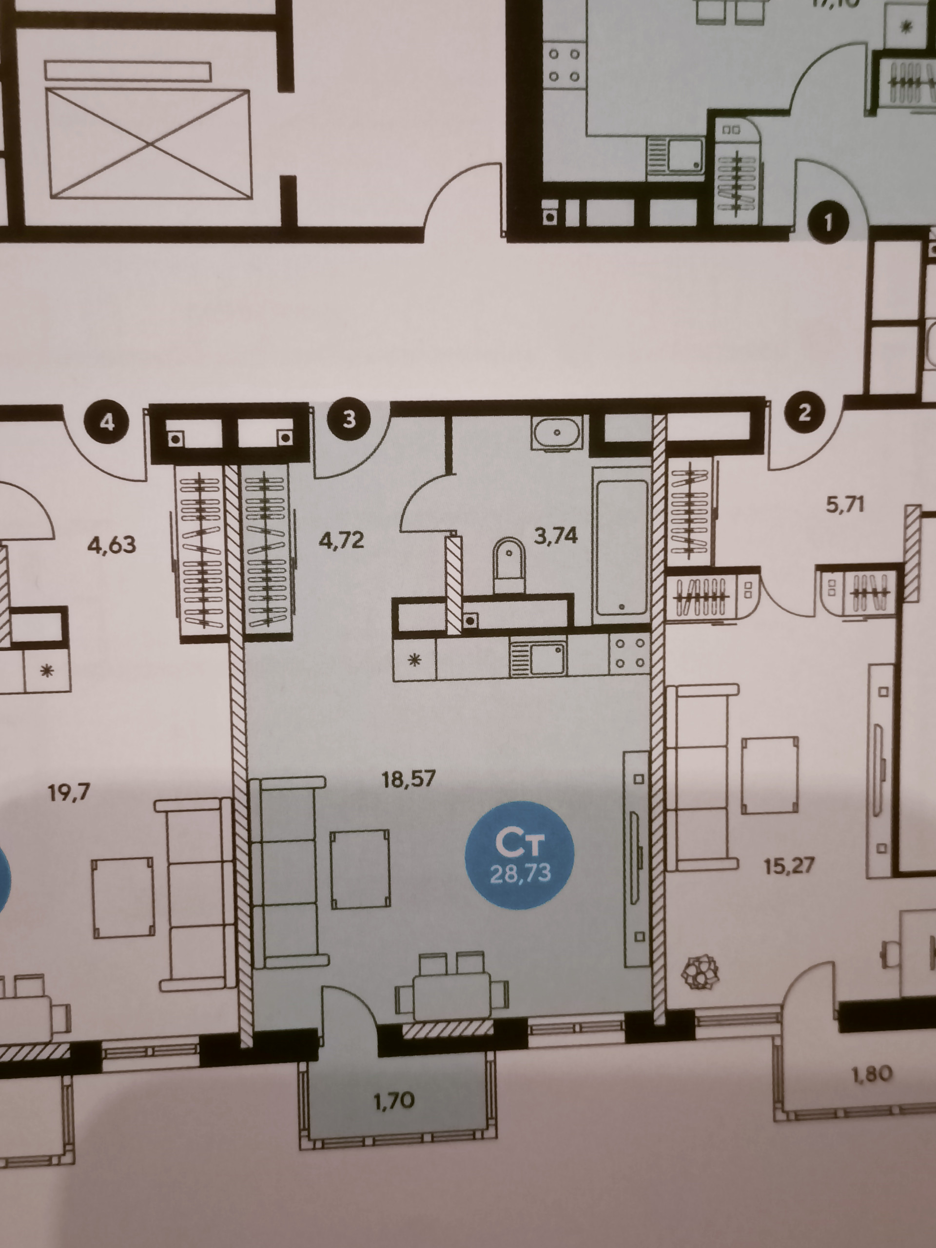 Высота потолков 2.8 м