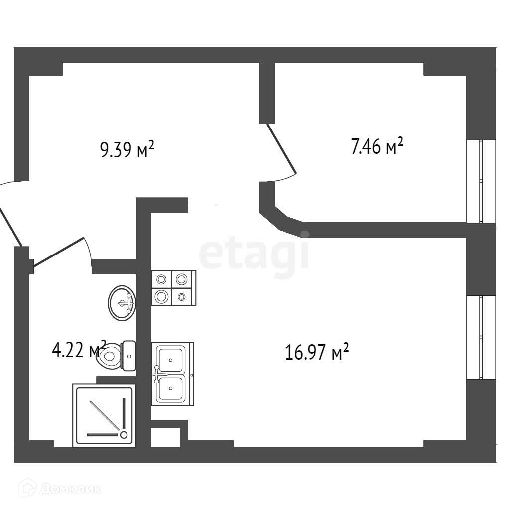 1-комнатная квартира, 38 м2, этаж 9 / 24, на продажу в Ростове-на-Дону, Доломановский переулок, 124с2