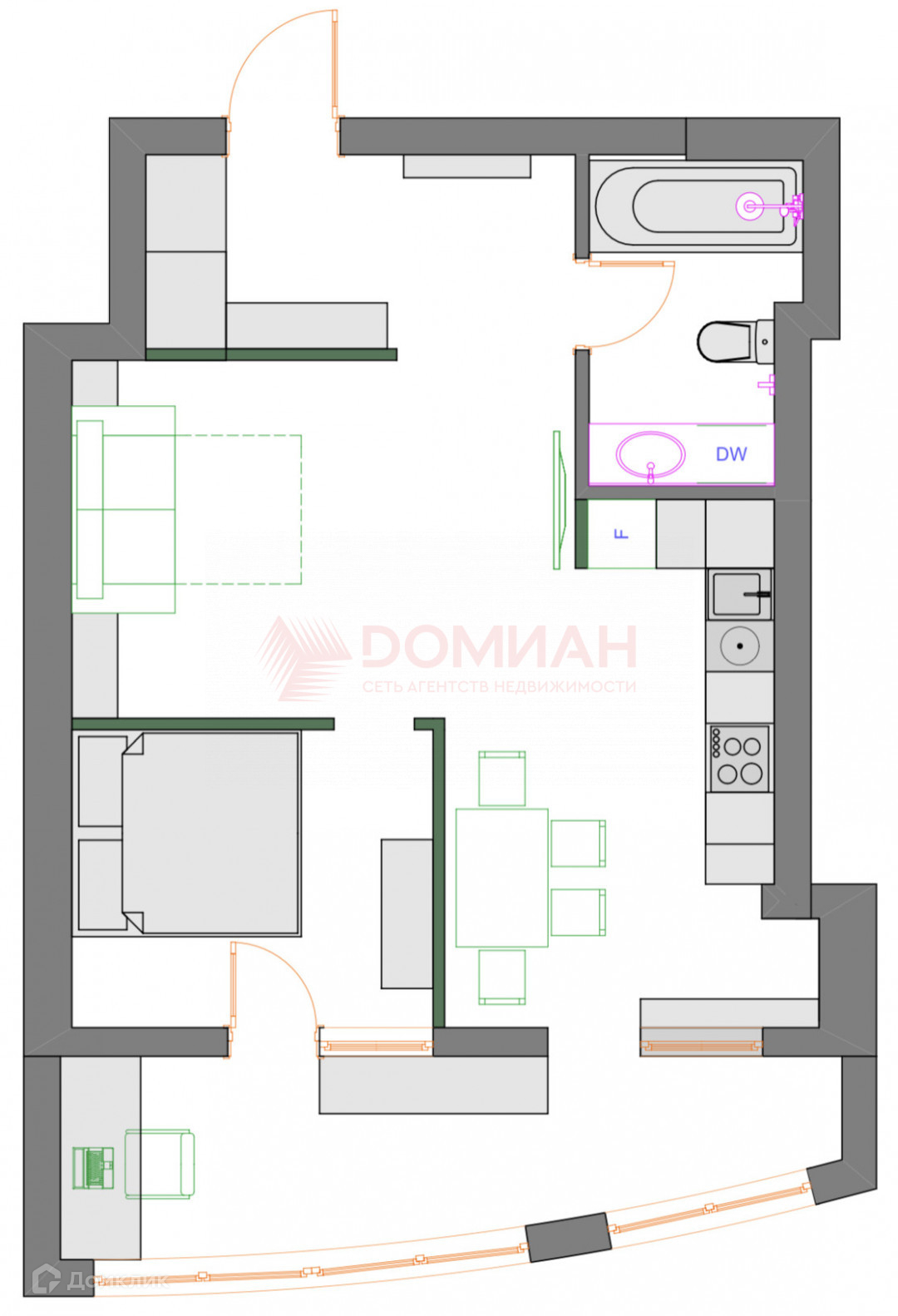 Общая площадь 55 м2