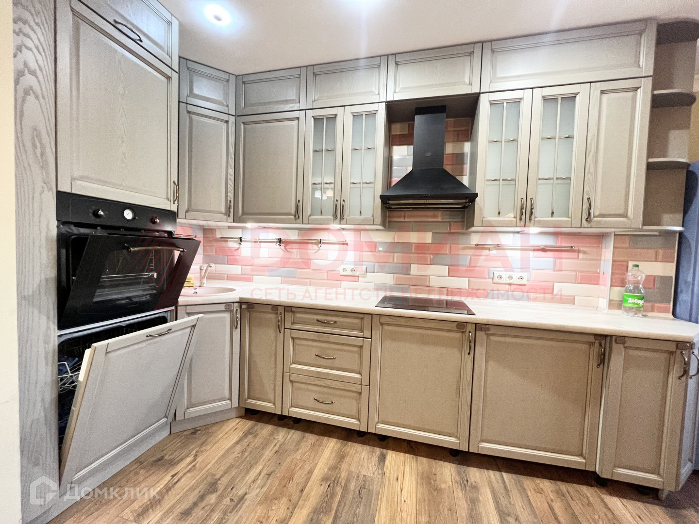 Фотографии соответствуют! В квартире остаётся всё! В кухонном гарнитуре встроенная посудомоечная машина, духовой шкаф, варочная панель, вытяжка. Есть место и выводы под стиральную машину.