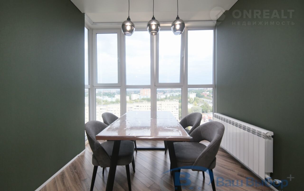 Трехкомнатная квартира: две большие спальни и просторная гостиная. А также в кухни панорамные окна с видом на город. Все лоджии утеплены. Окна после застройщика меняли на новые. Есть большая гардеробная в спальне.