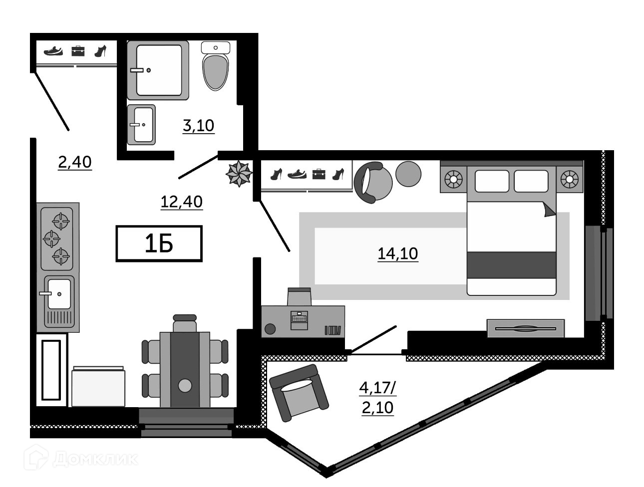 Общая площадь 34.3 м2