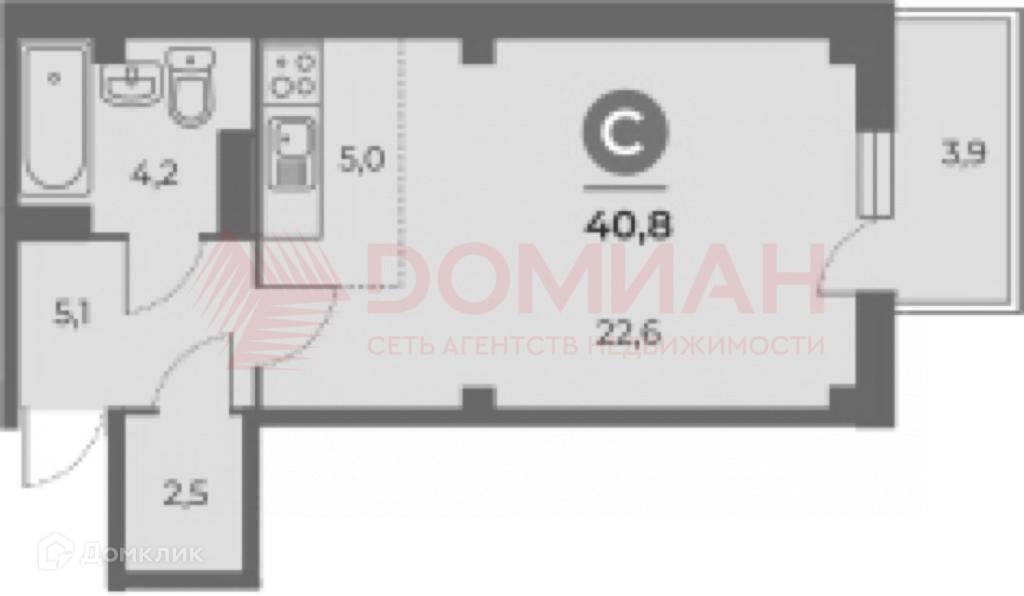 Общая площадь 40.8 м2
