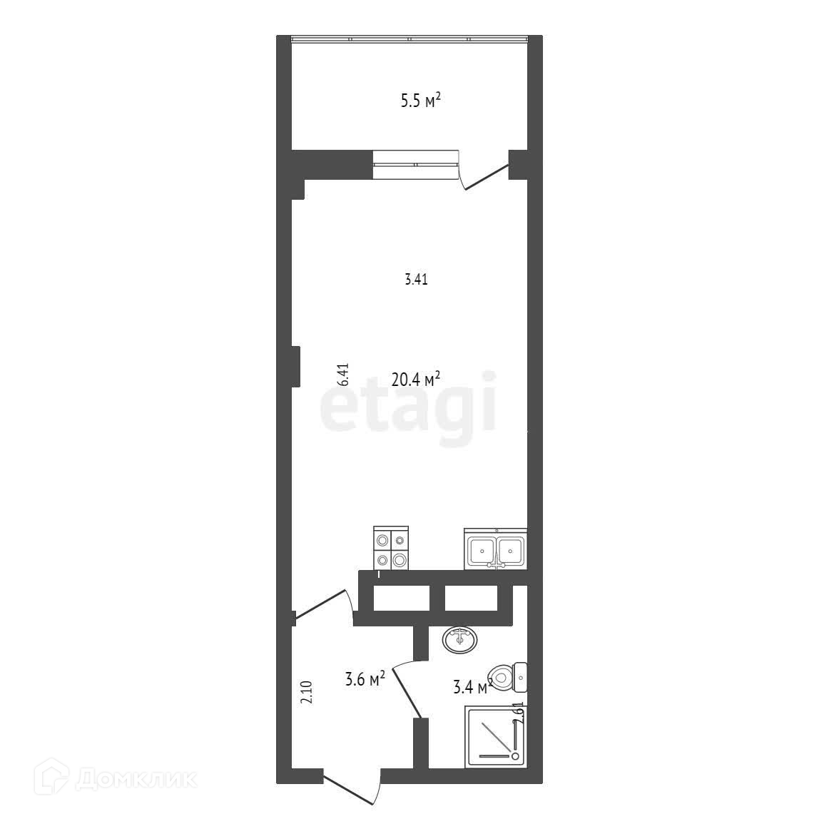 Площадь квaртиры 27,4 плюc тeплaя жилая лоджия 5,5, всего 32,9 м2.