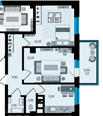 Общая площадь 54 м2