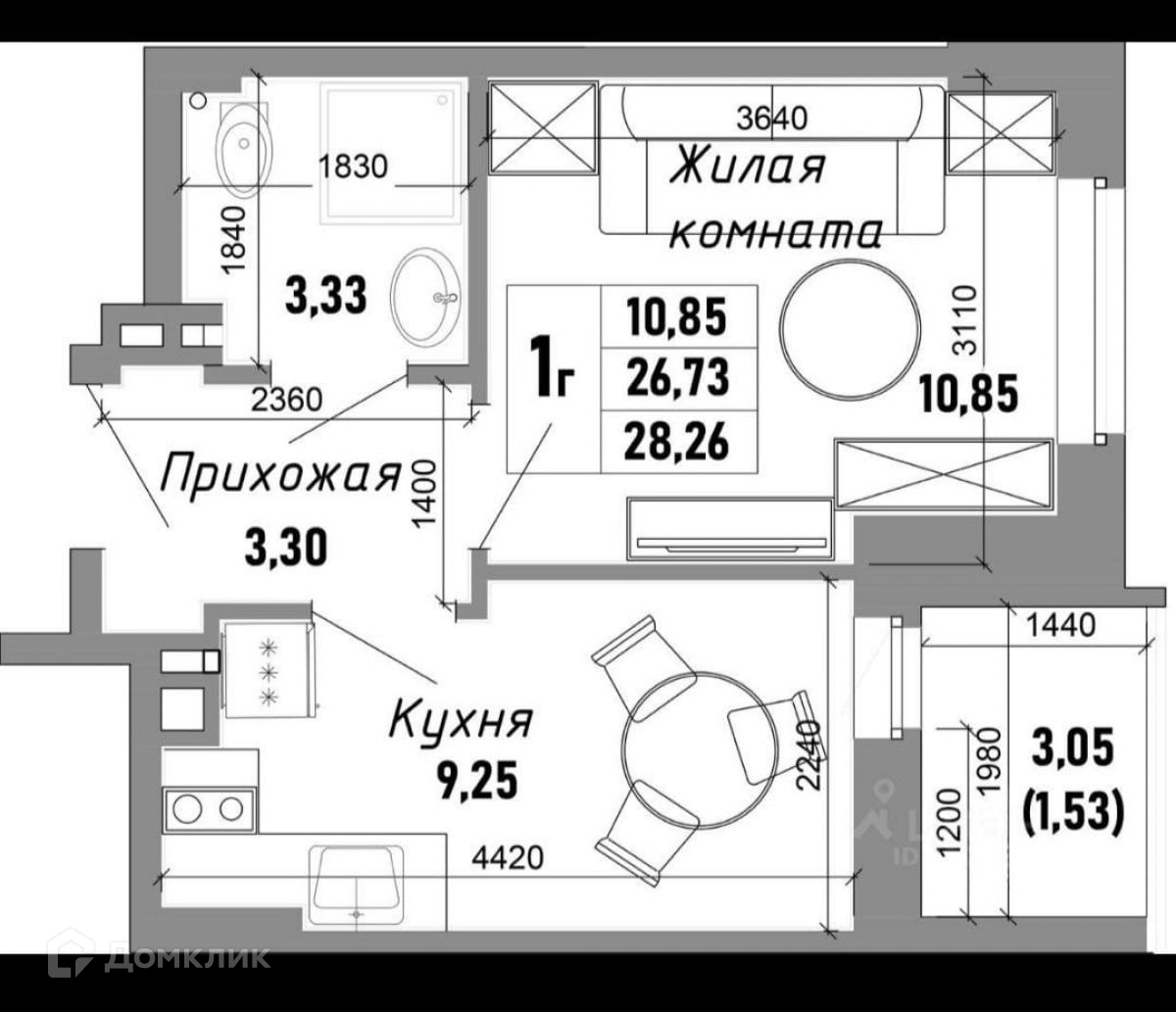 Балкон, лоджия 1 балкон