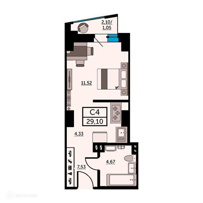 Общая площадь 29.1 м2