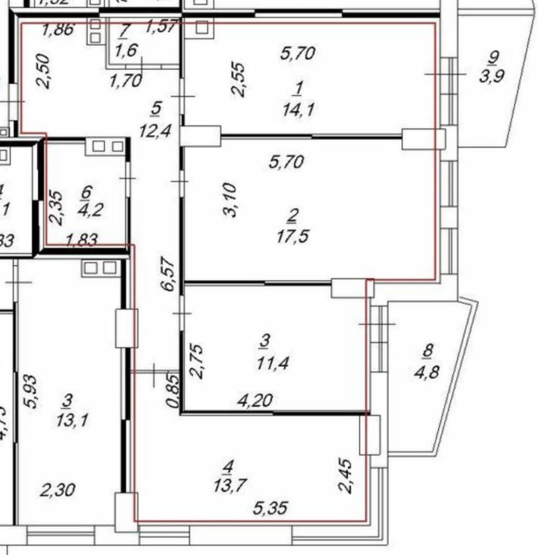 Общая площадь 78.5 м2