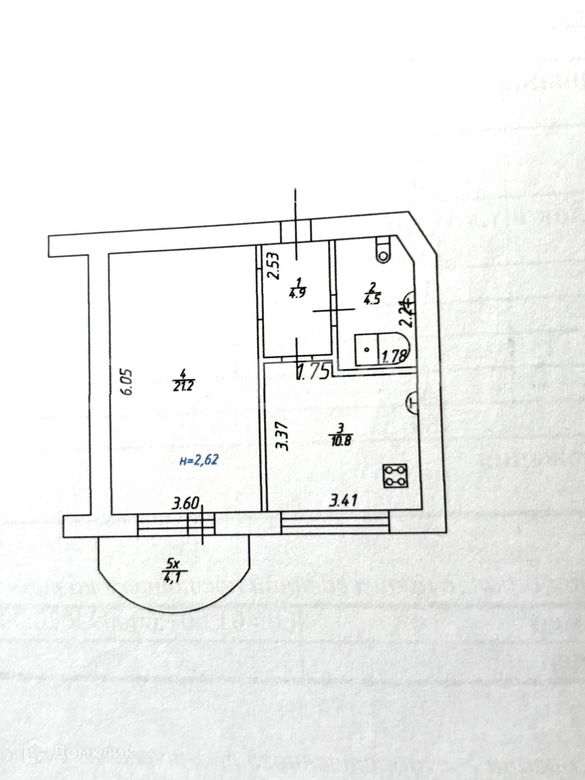 Балкон, лоджия 1 балкон