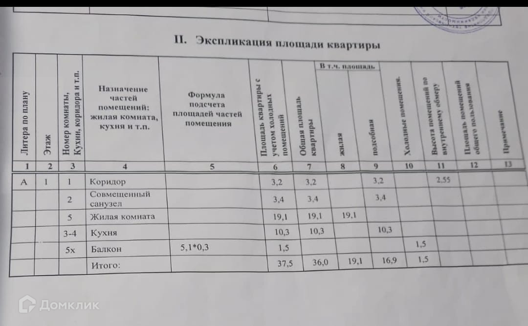 Общая площадь 37.5 м2