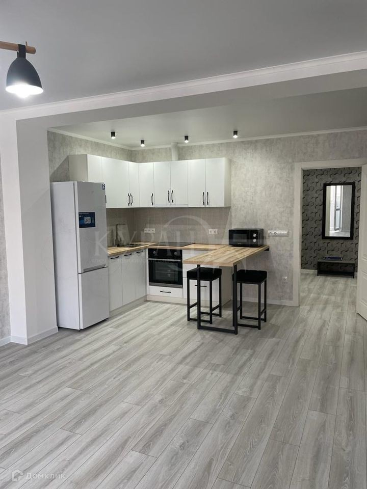 Квартира со свежим ремонтом, никто не проживал. Закрытая территория, охрана, в подъезде консьерж. Оснащена кухней, бытовая техника: стиральная машина, духовой шкаф, вытяжка, варочная панель, телевизор, холодильник, микроволновая печь, кондиционер. В кухне Барная стойка со стульями. Санузел совмещённый, оснащён всей необходимой сантехникой. Утеплённая лоджия, гардеробная в коридоре: Во дворе детская площадка, за территорией ЖК прогулочная парковая зона.