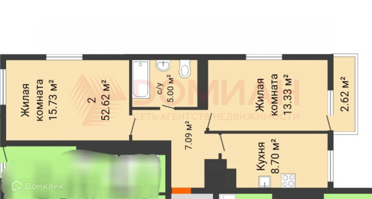 Общая площадь 53 м2