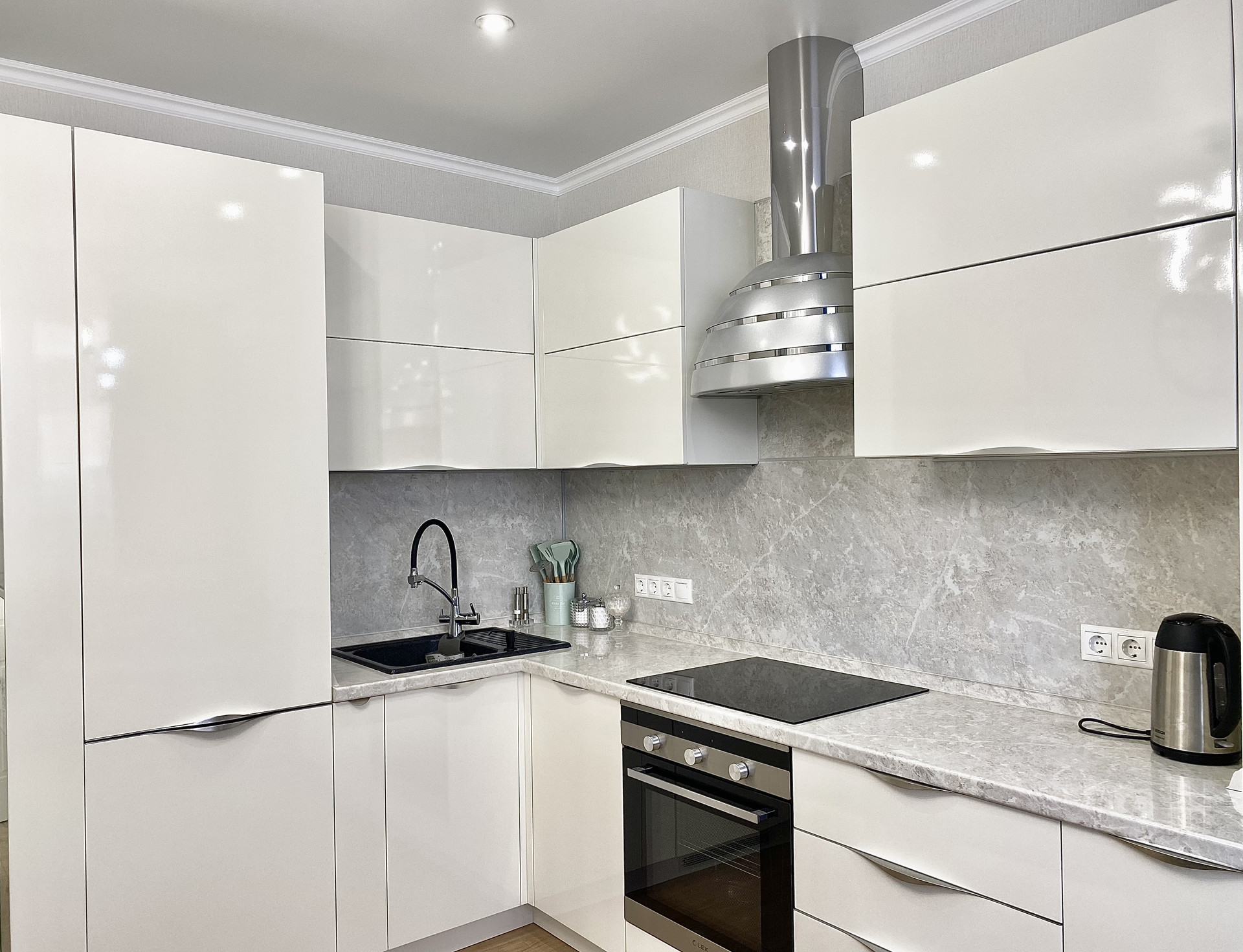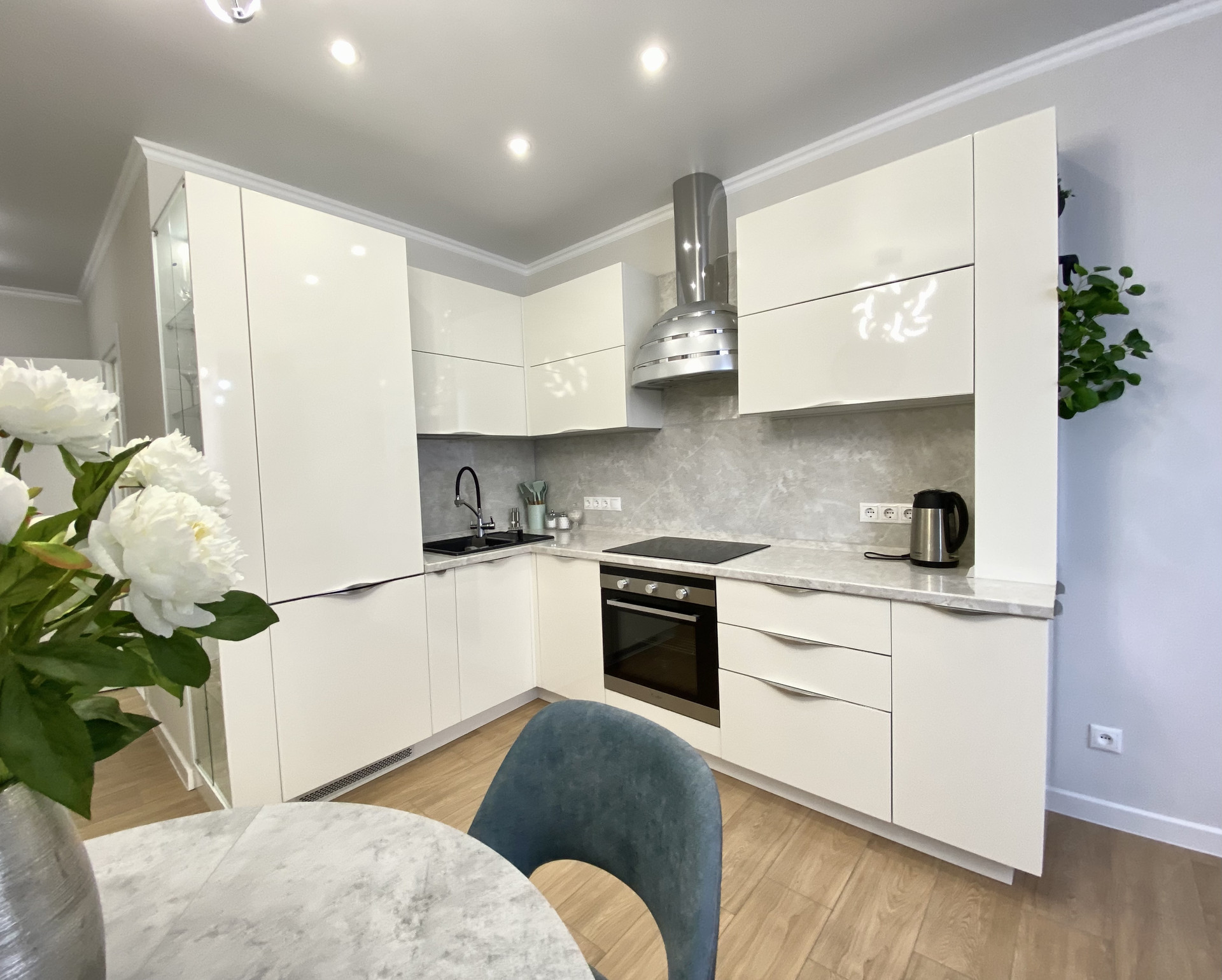 ∎ На кухне вся необходимая для жизни техника - варочная панель, духовой шкаф, холодильник, посудомоечная машина.