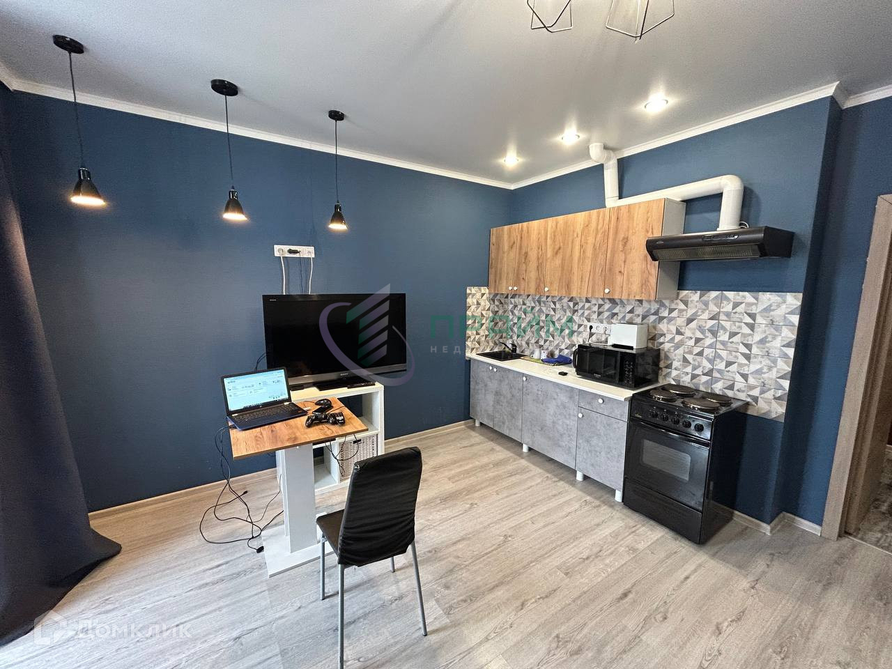 В квартире остается практически вся мебель и техника, можно заехать и жить.