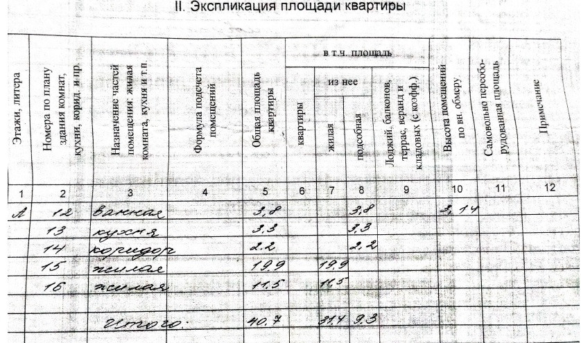 Общая площадь 40.7 м2