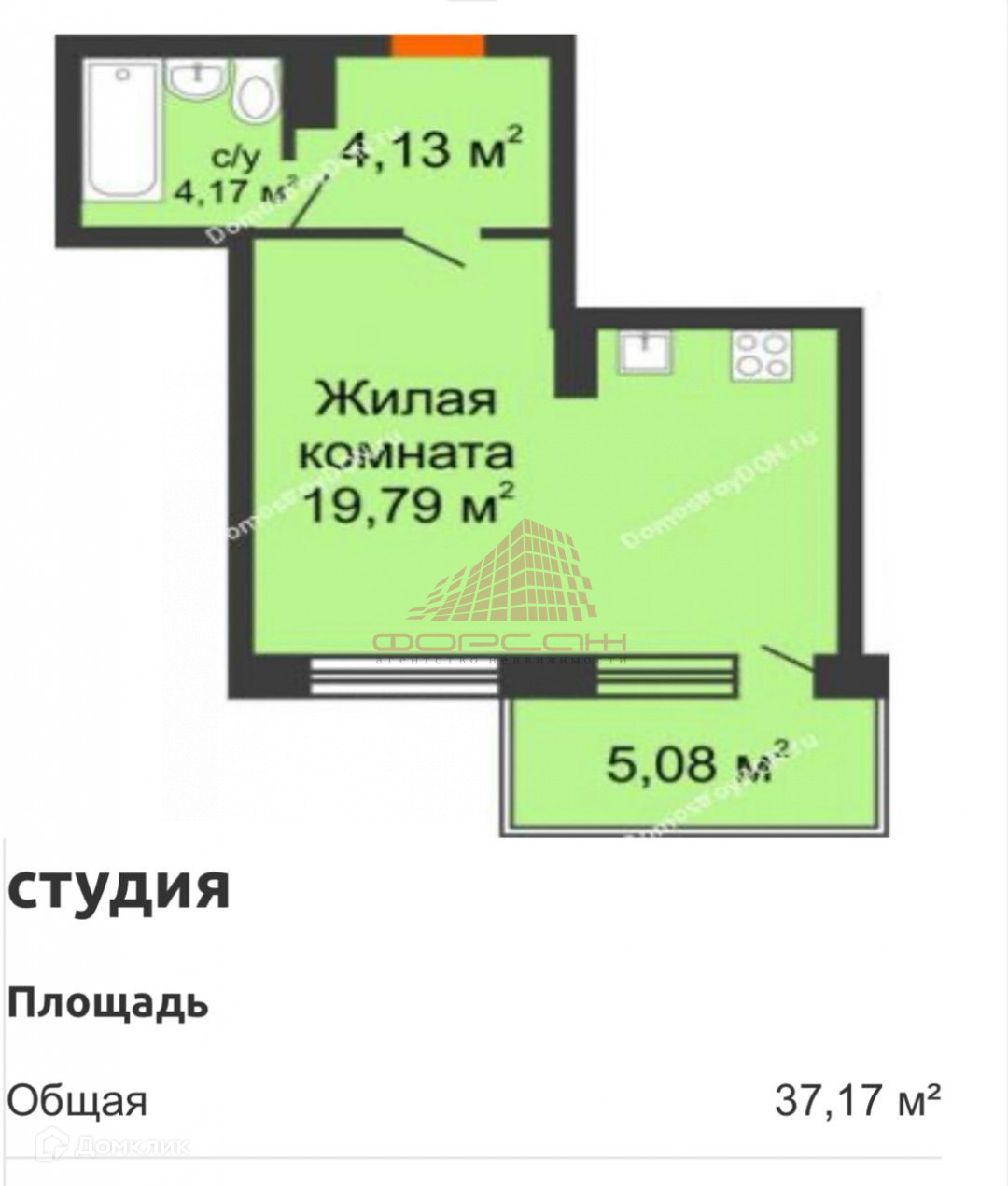 Общая площадь 37 м2