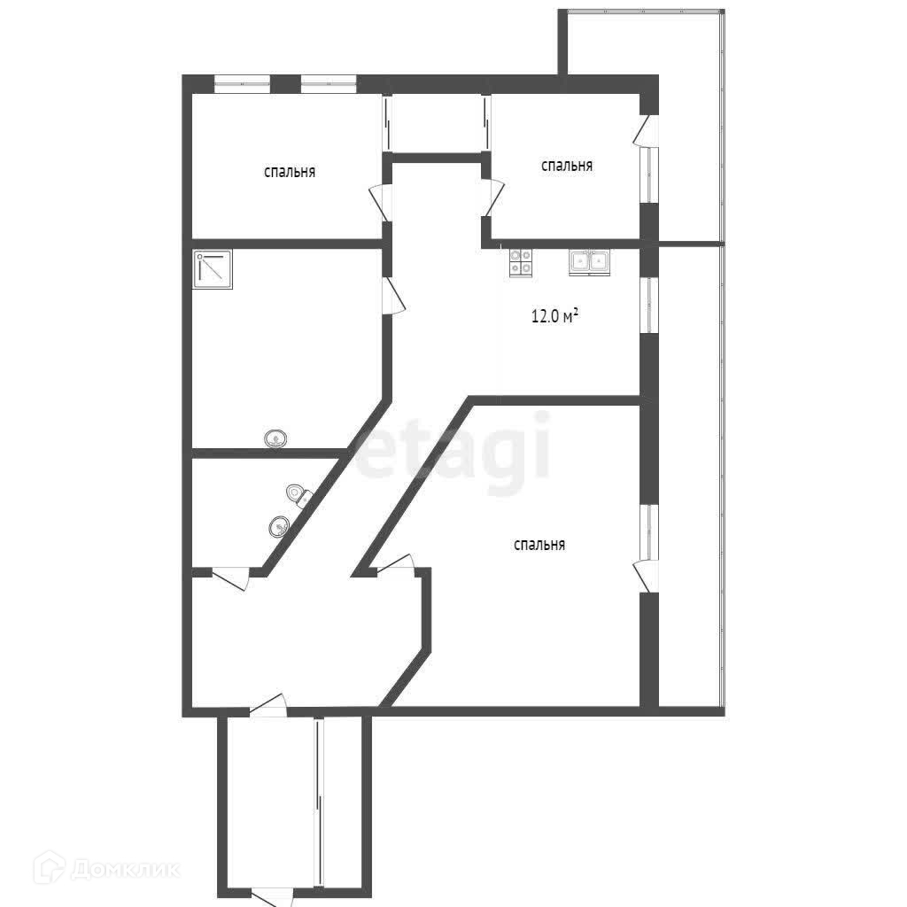 Площадь кухни 12 м2