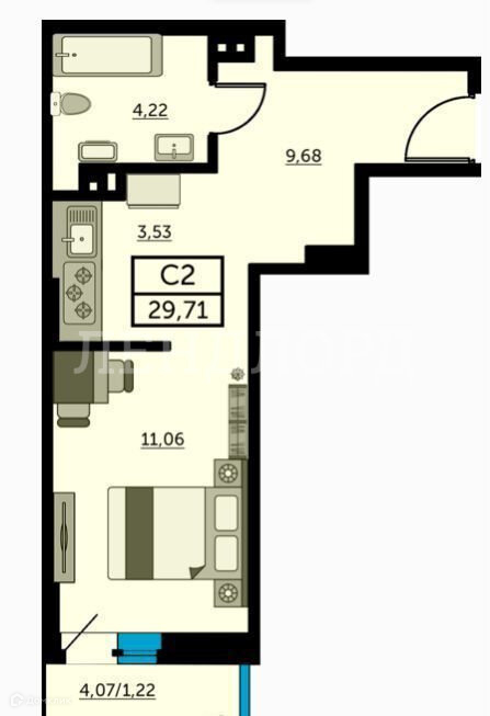 Общая площадь 29.22 м2