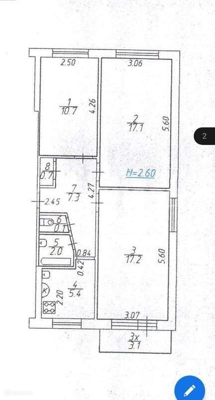 Высота потолков 2.6 м