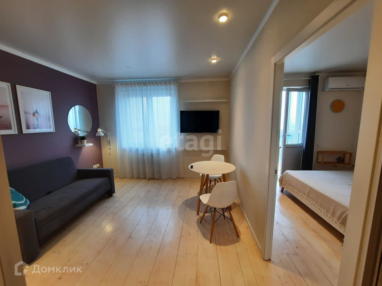 По всей квартире натуральный деревянный пол, натяжной потолок. В зале: диван, обеденная зона, телевизор, вместительный шкаф-гардероб, в зоне кухни: холодильник, стиральная машина, плита. В спальне: новая кровать шириной 160 см с ортопедическим матрасом, сплит-система, есть ниша для дополнительного гардероба, детской кроватки или организации рабочего места. В стоимость квартиры входит все что есть на фотографиях.