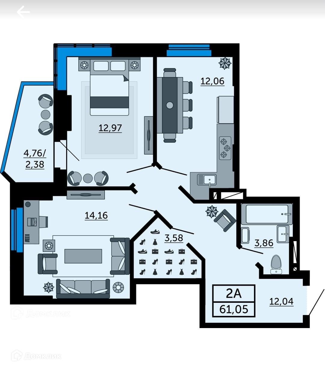 Общая площадь 61.05 м2