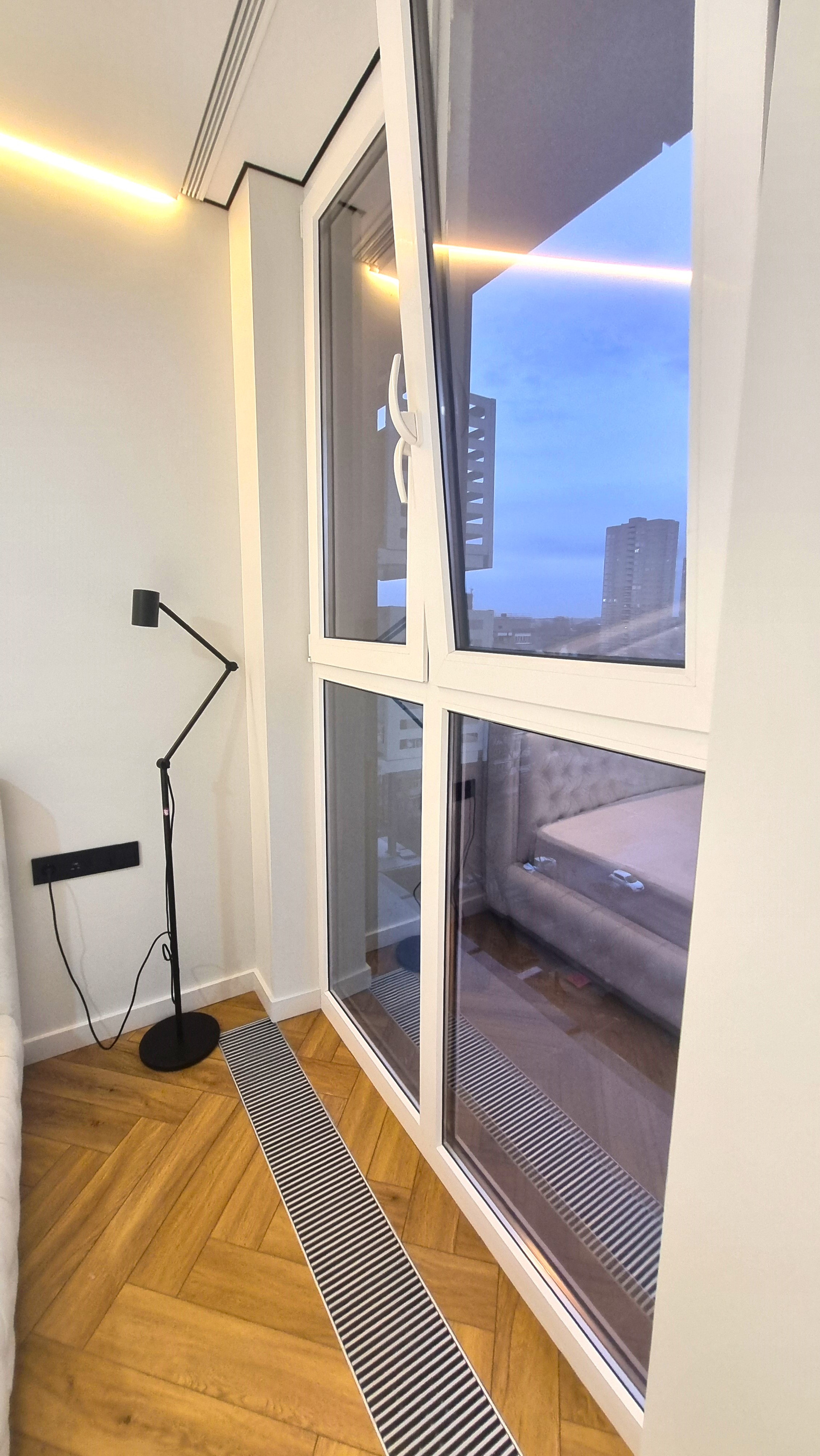 Панорамные окна, которые дают шикарный обзор. Для сохранения преимуществ панорамных окон установлены внутрипольные конвекторы.