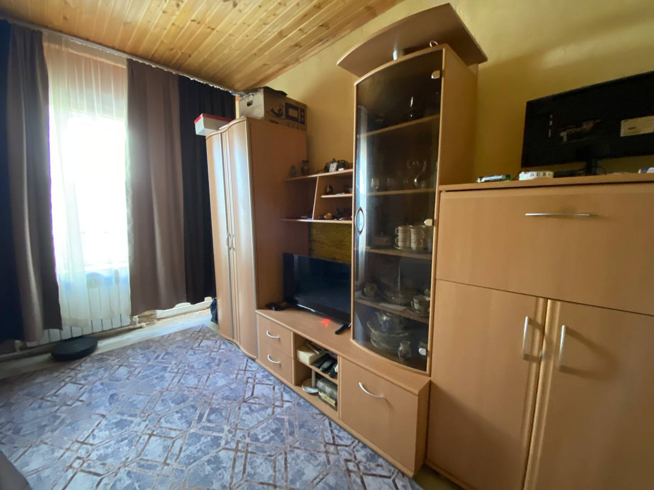 Хорошее жилое состояние - на полу ламинат, стены и потолок дерево, что красиво и практично. Свой балкон.