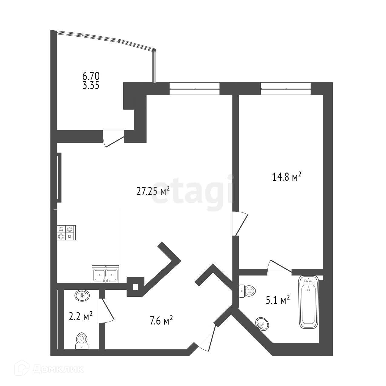 Общая площадь 57 м2