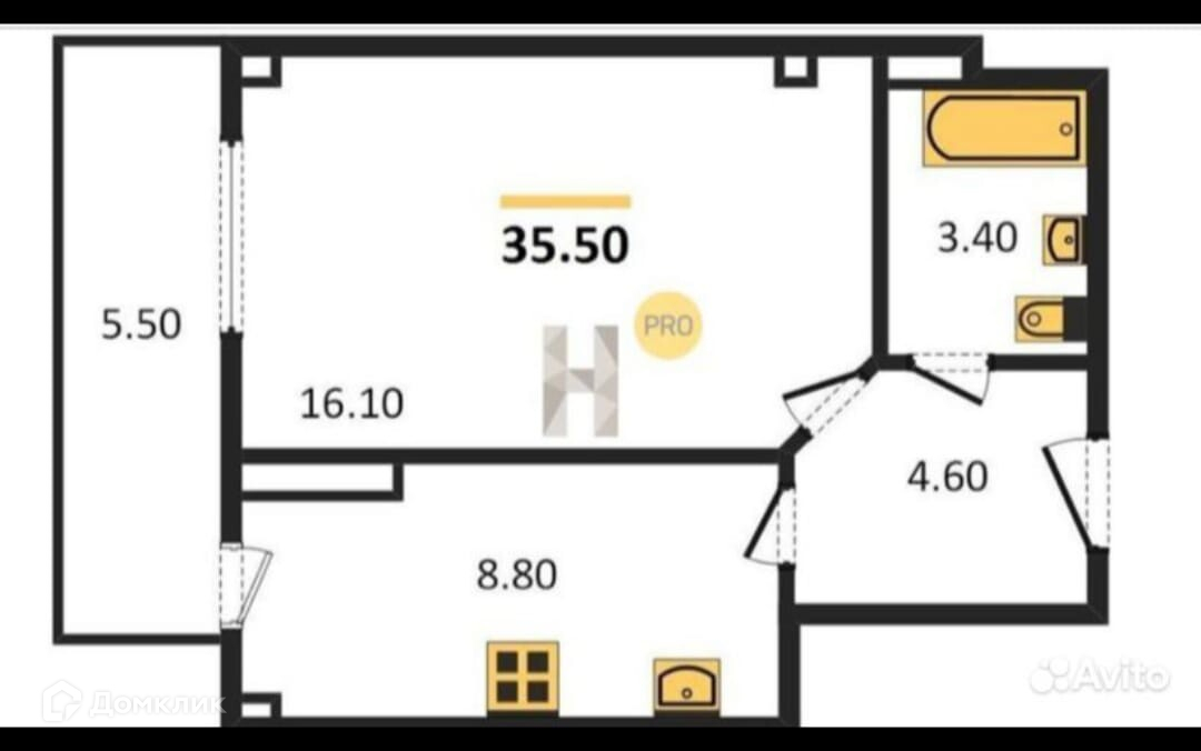 Общая площадь 35.5 м2