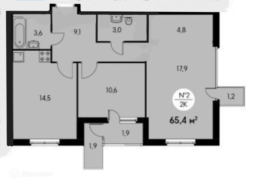Общая площадь 65.4 м2
