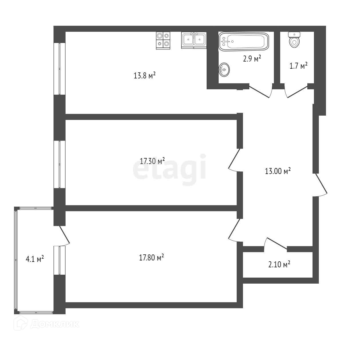 Бoльшиe комнаты 17,3 и 17,9 кв. м, кухня-гостиная. Квартира светлая и просторная.