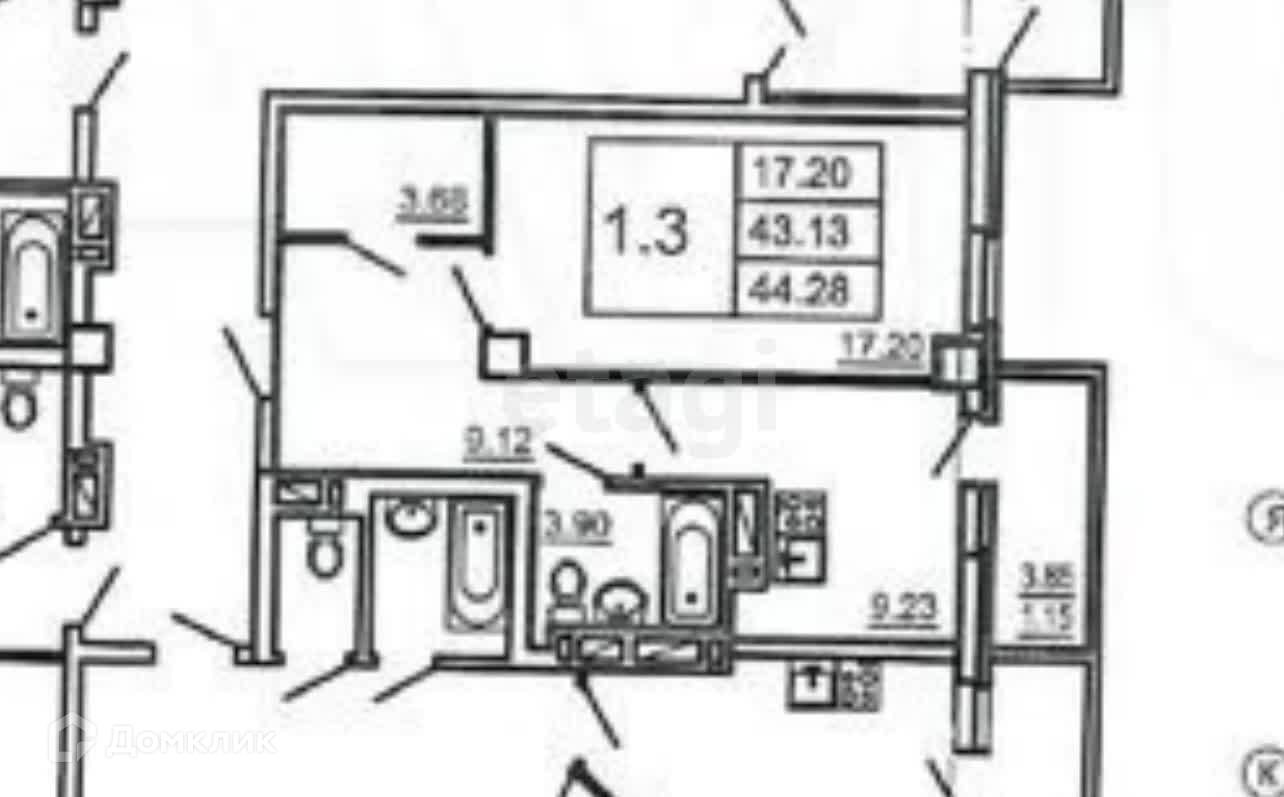 Общая площадь 44.3 м2