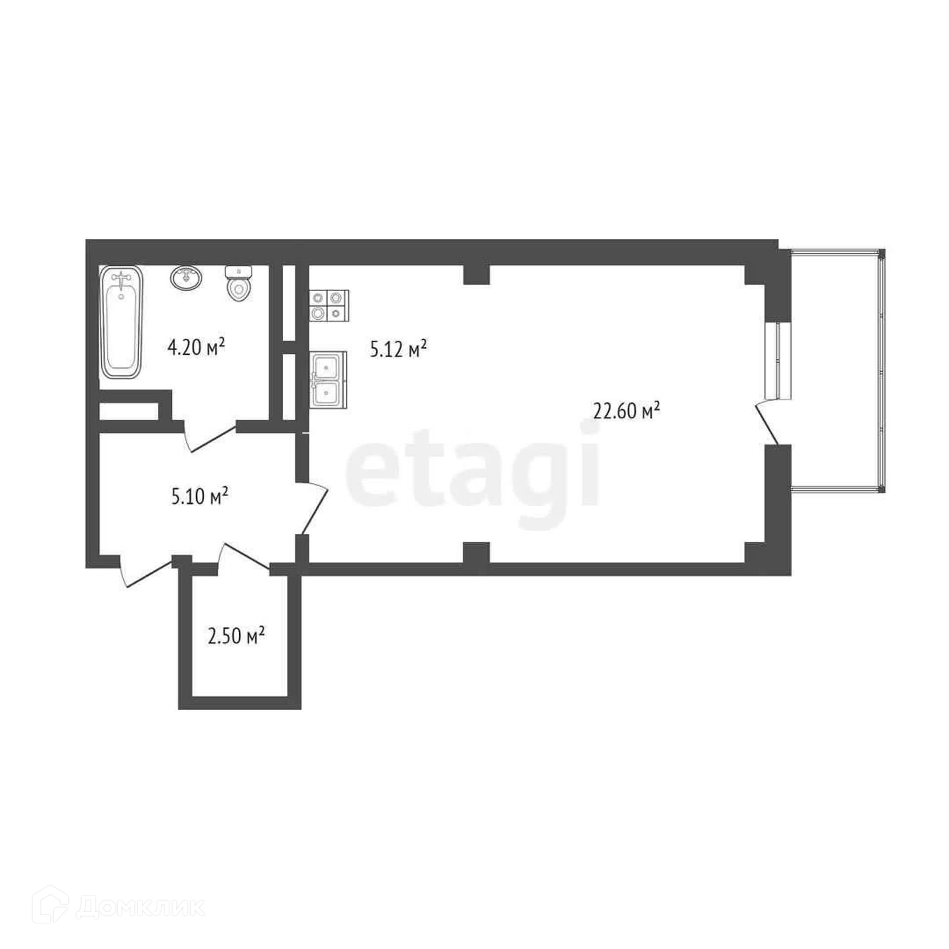 Балкон, лоджия 1 балкон