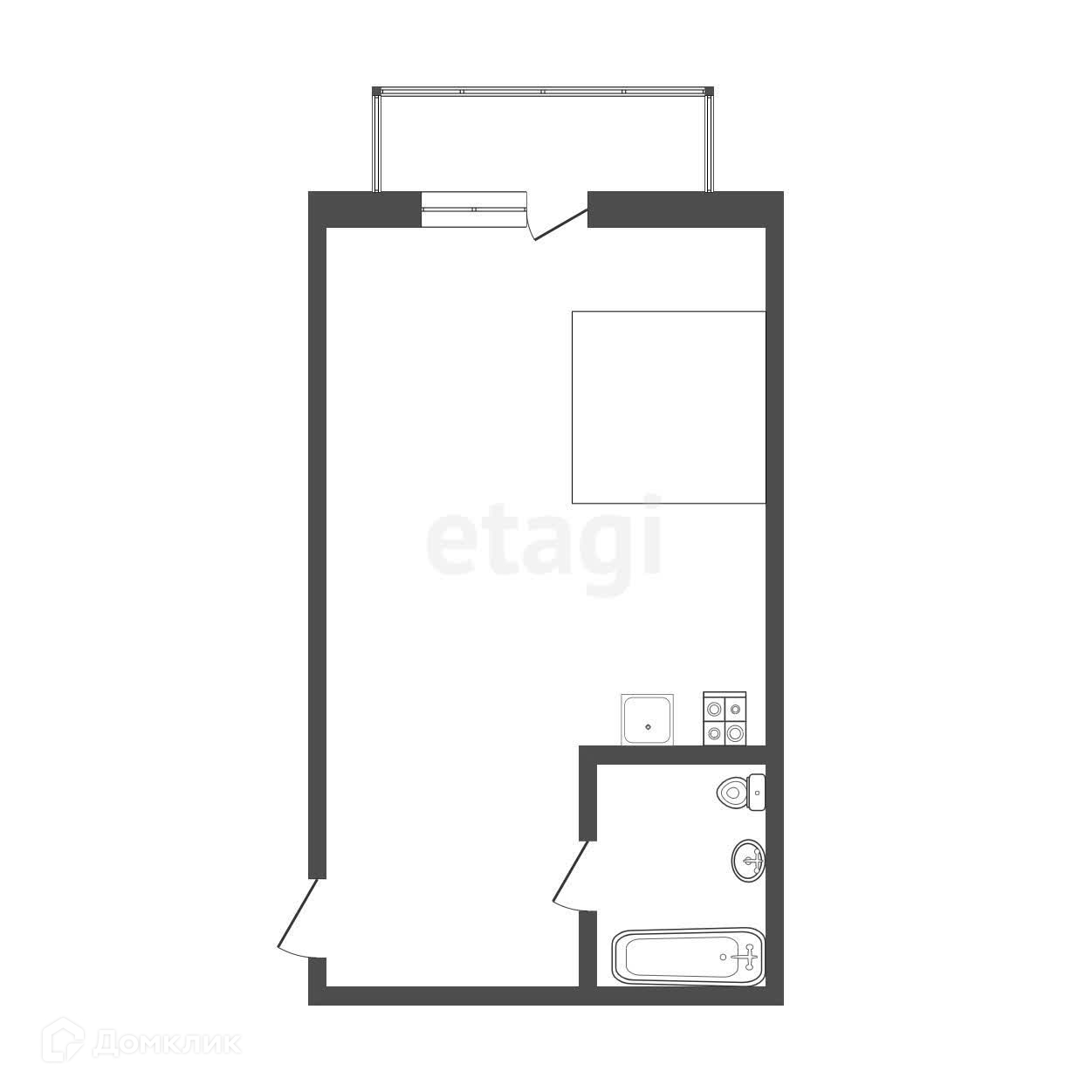 Общая площадь 27.2м, 6 этаж.