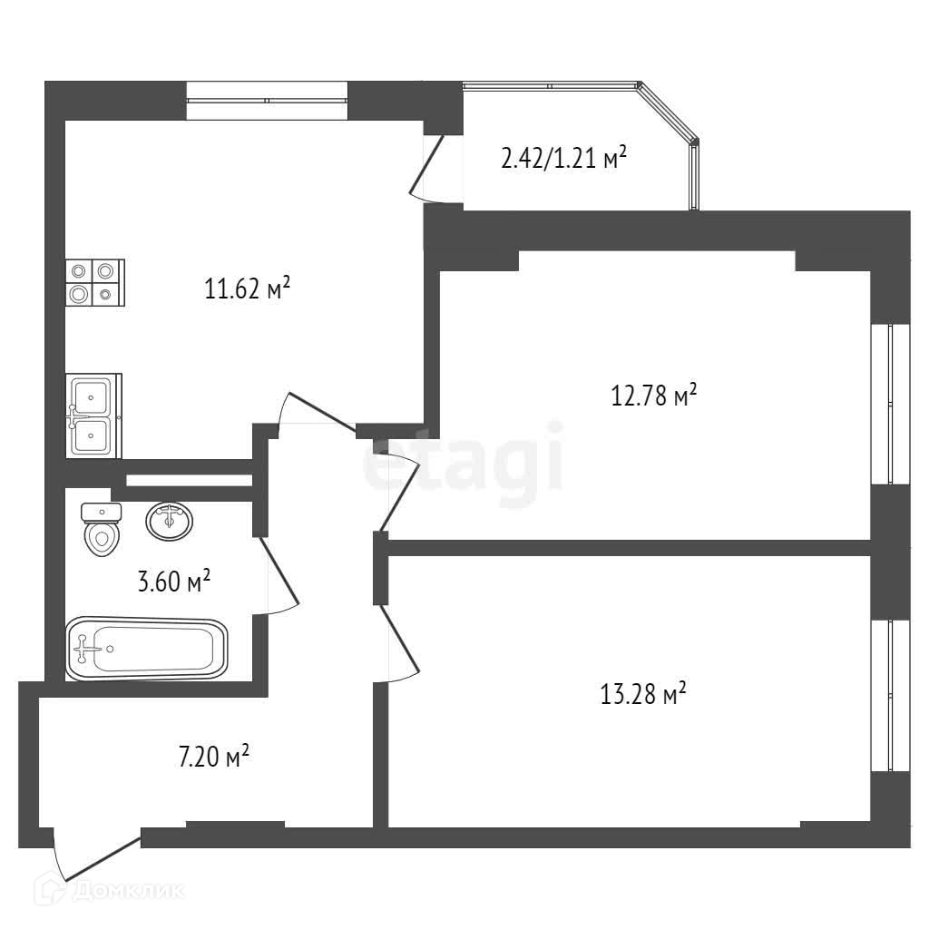 Общая площадь 49.7 м2