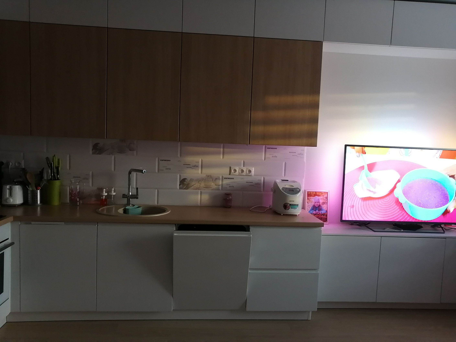 диодная подсветка, доводчики blum. Фасад кухни фирмы Fabriche, на ней не остаётся никаких следов и пятен совсем. Также есть скрытая подсветка на потолке в кухне. На всех радиаторах стоят регуляторы, установлены счетчики тепла. В квартире тихо даже с открытыми окнами, вид на красивое закатное небо. Закрытая территория, дополнительная парковка за домом, детская, спортивная и баскетбольная площадки. Школу (20 лицей) видно с окна, 3 садика, спортивная школа через дорогу, детские развивающие центры на территории жк, детская и взрослая поликлиники, стоматология. Детский бассейн Морские звёздочки, парк Островского и ДК в пешей доступности, бассейн Коралл в 5мин езды.