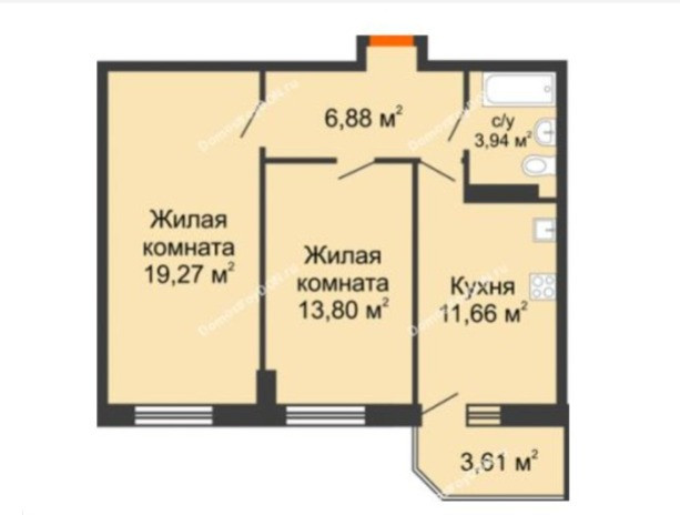 • Планировка: кухня 11,66 кв м и две раздельных жилых комнаты 19 и 14 кв м,