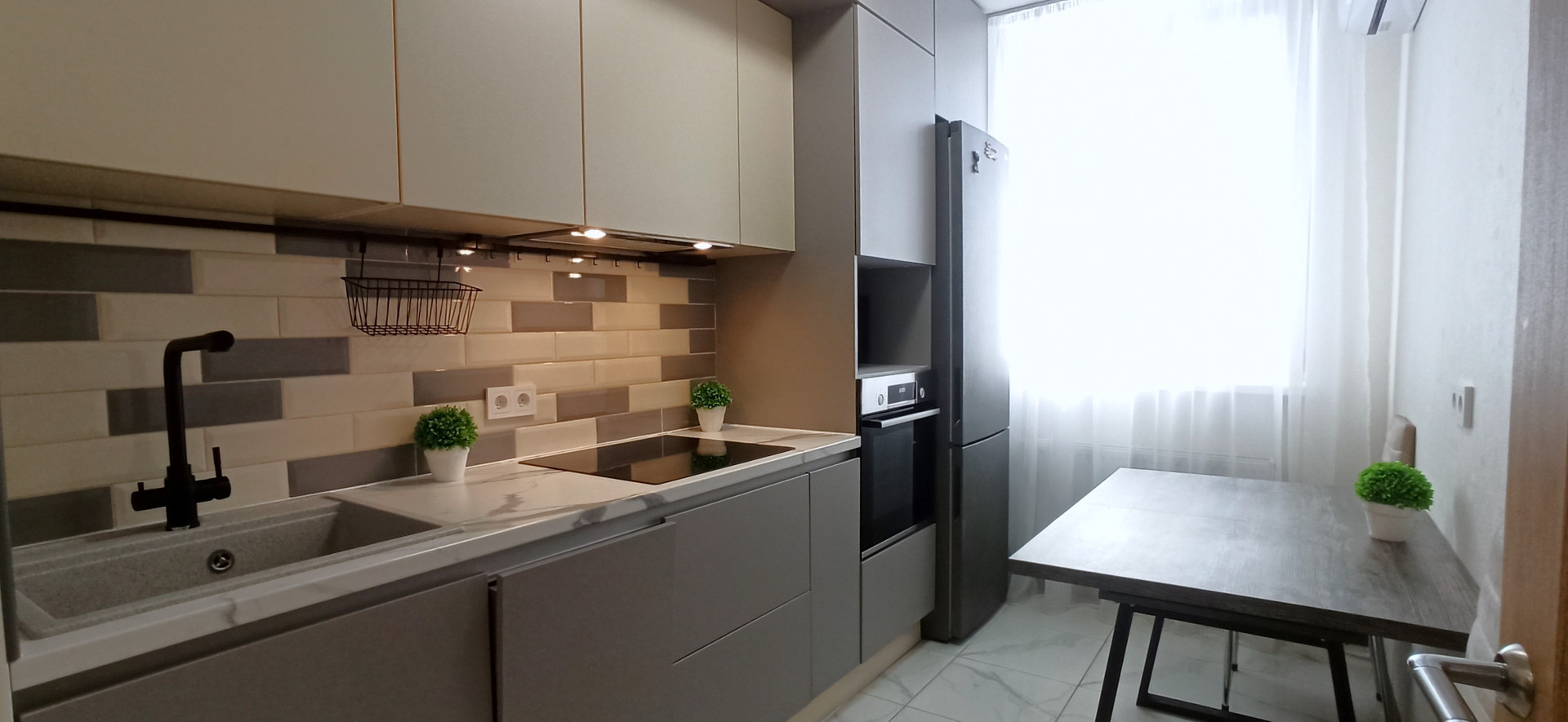 Квартира полностью укомплектована мебелью и техникой, не требует вложений для комфортного проживания. Помимо всего прочего, в квартире установлены две сплит-системы, а также посудомоечная машина и система фильтрации воды на кухне.