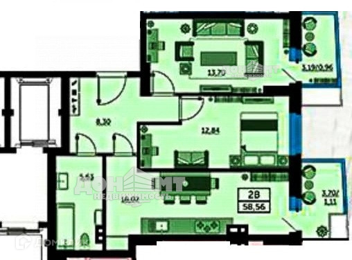 Общая площадь 59 м2