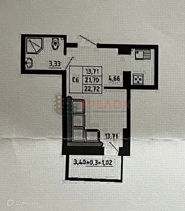 Жилая площадь 21.7 м2