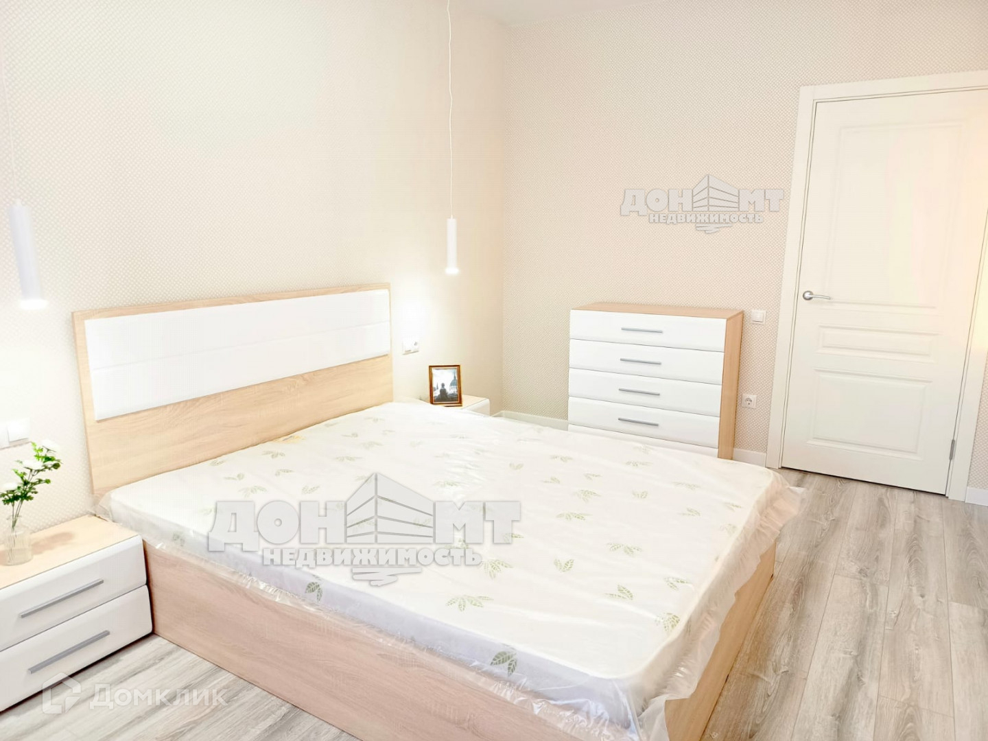 В квартире никто не жил, вся мебель и техника новые, имеются два встроенных шкафа.