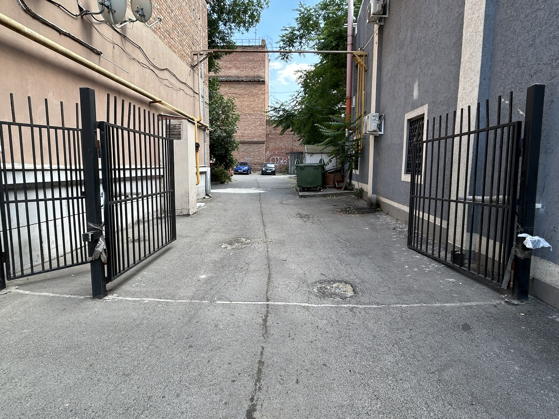 Двор - закрытый, автоматические ворота.