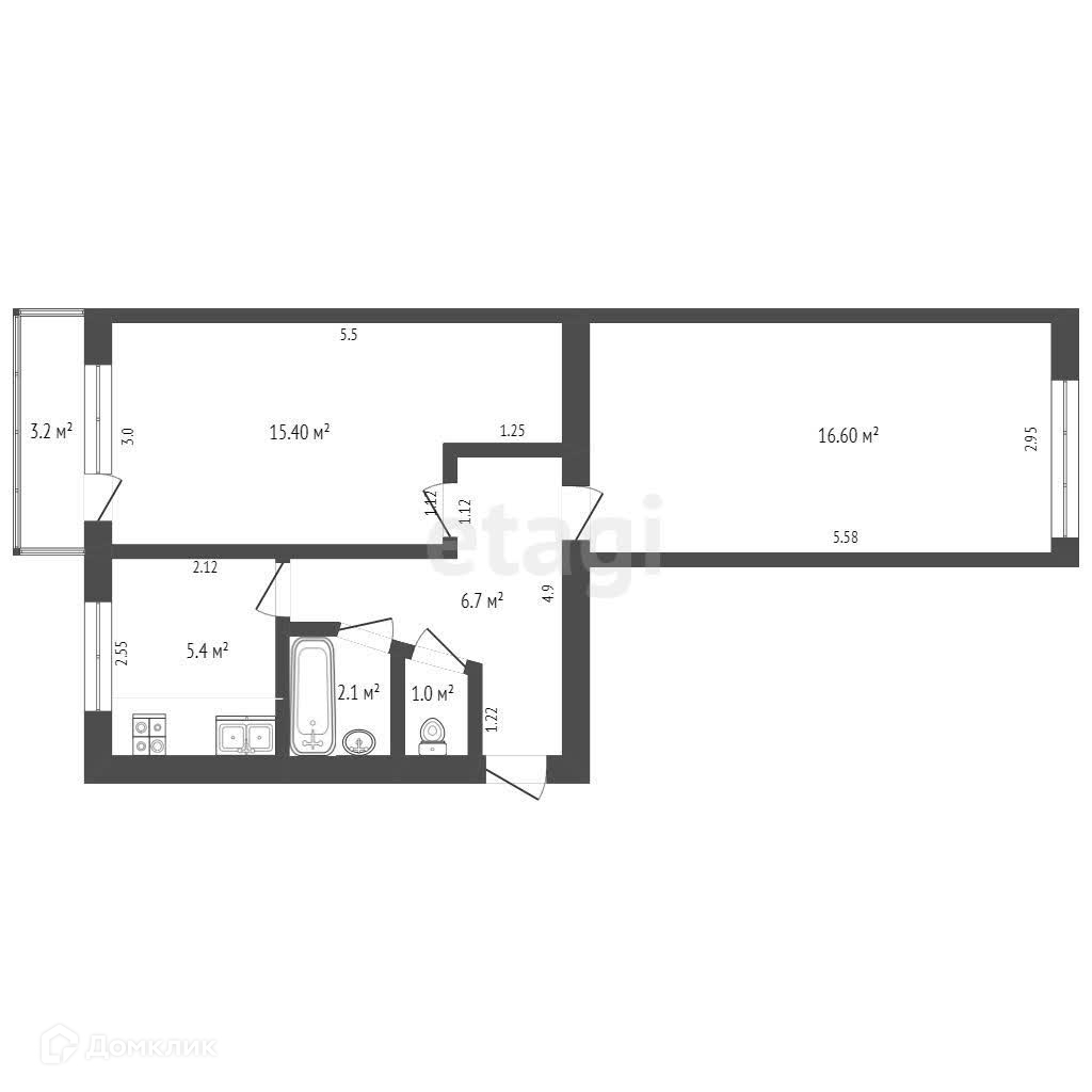Общая площадь 54.1 м2
