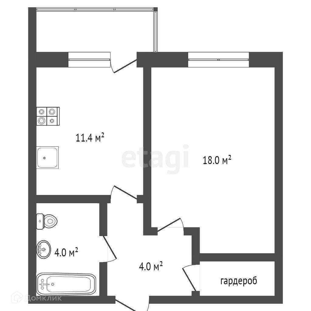 Балкон, лоджия 1 балкон